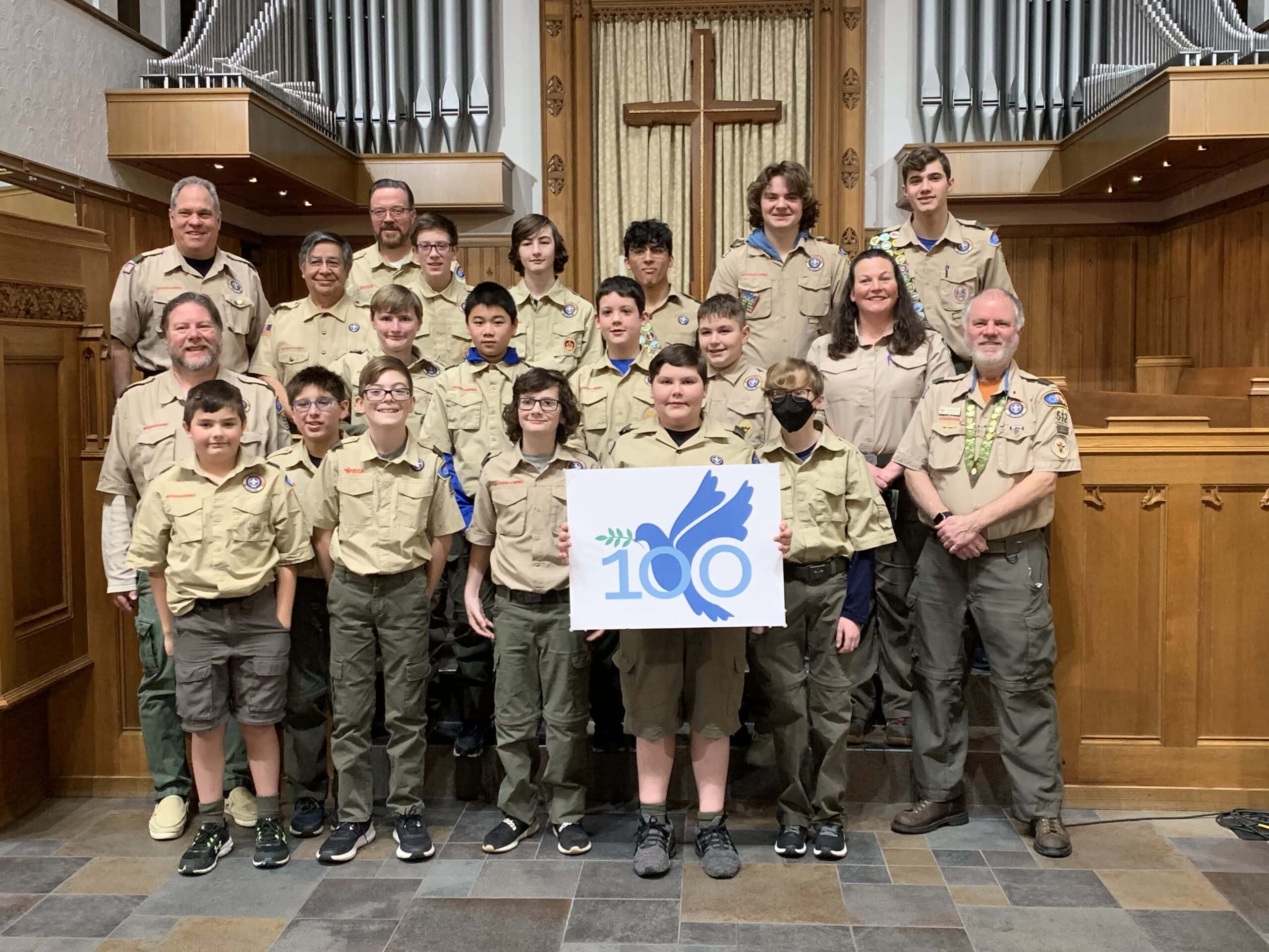 On Sunday, February 12, 21 scouts and leaders from Troop 512 joined the Covenant community in worship. The members participated in the worship service and then helped sort and box the Souper Bowl of Caring contributions. The troop currently has 68 scouts and 34 leaders. Three of the scouts are working toward their Eagle Award. As part of the 100th Anniversary Celebration, the scouts were given Anniversary patches.