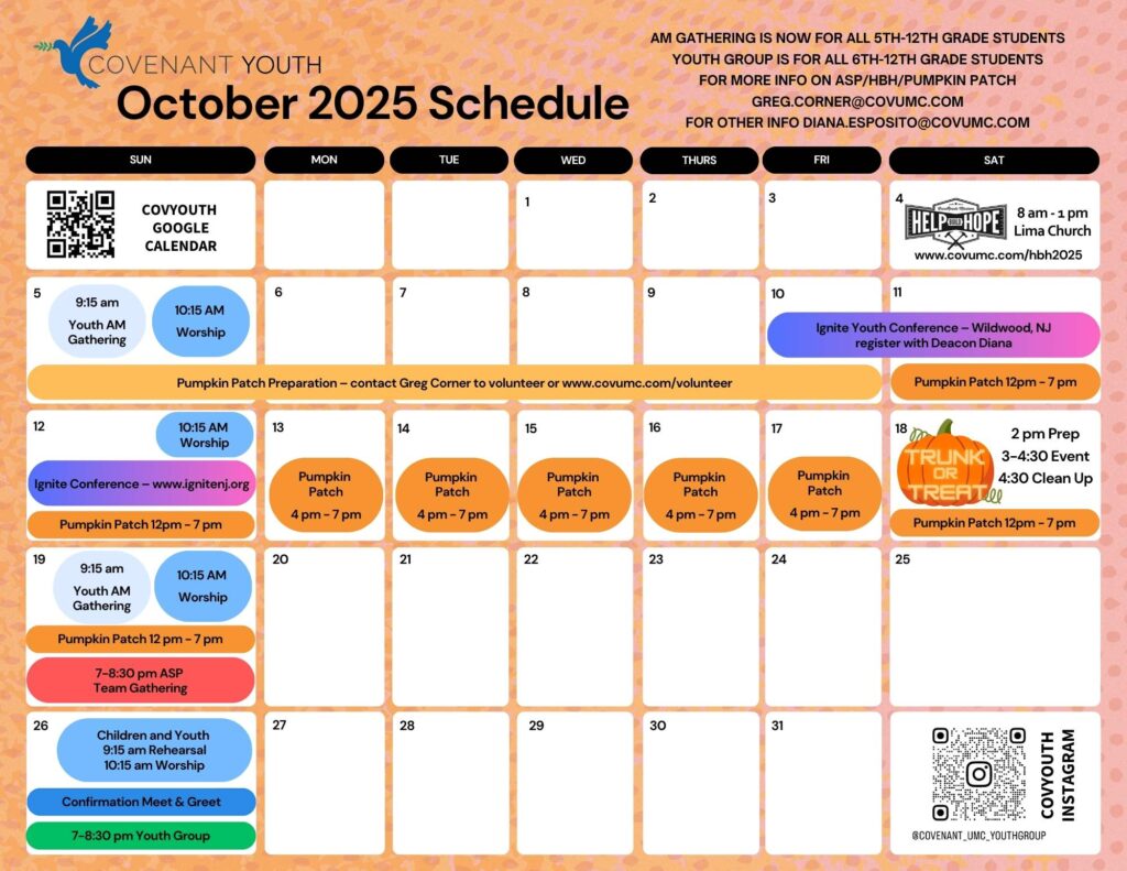 Covenant Youth AM Gatherings are open to all 5th-12th grade students. All other Covenant Youth activities are open to all 6th-12th grade students. For more information, about ASP, contact [email protected]. For more information on all other activities, contact Deacon Diana Esposito [email protected].