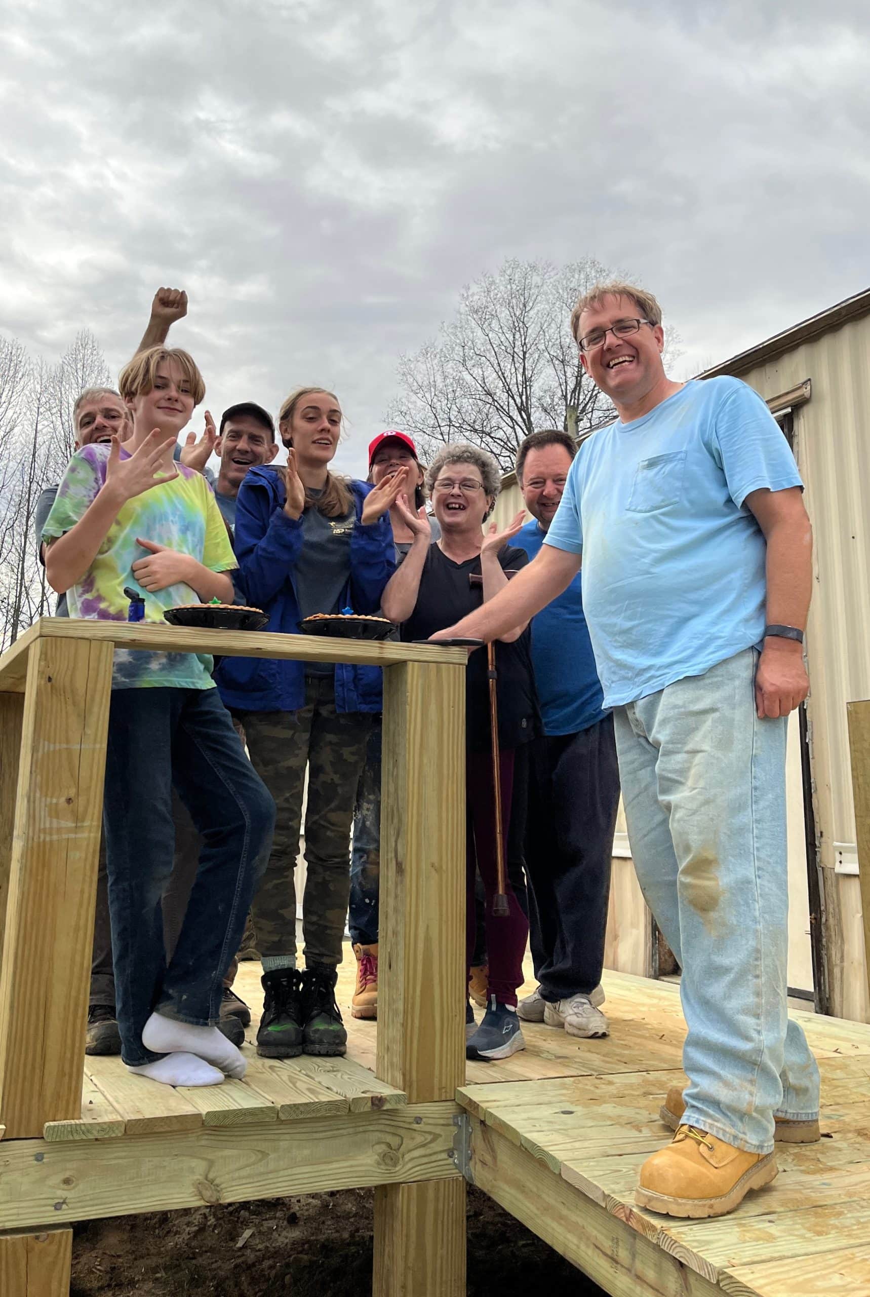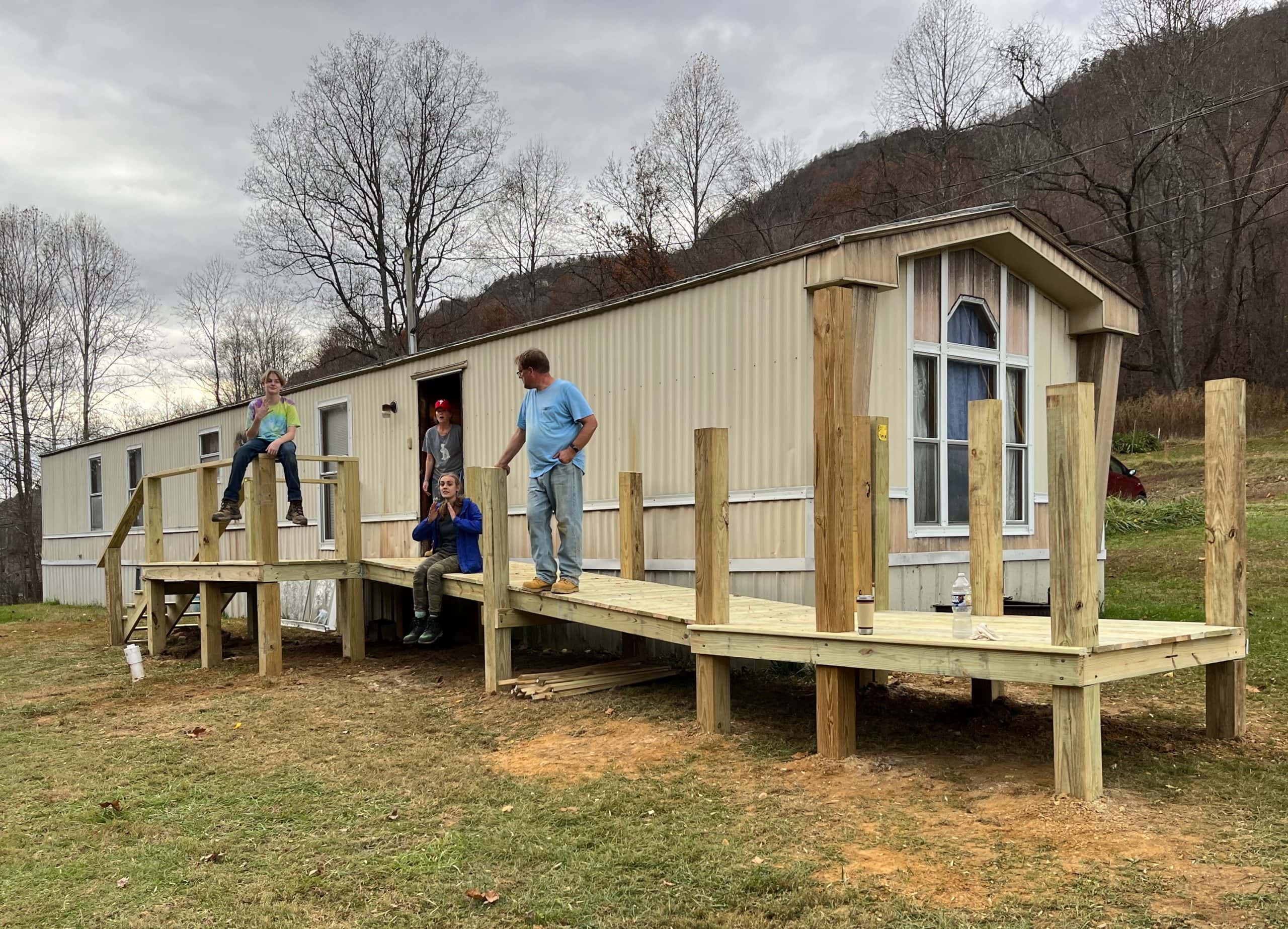 During the first week of November, the Covenant Appalachia Service Project team sent a crew to Jonesville Virginia to serve in ASP’s year-round program. The crew of volunteers Gerg, Lori Corner, Rich Debany, Todd Gallagher, Tom Hiscott, Victoria Hiscott and Bryce Munce had the pleasure of spending three days with homeowners Lori and Norman who enthusiastically shared stories of life in the mountains on the border between Virginia and Kentucky. During those three days, this small but mighty crew removed a porch and fashioned a hardy new porch, stairs and ramp to make it easier and safer for Lori and Norman to come and go – and almost completed it. Along the way, they enjoyed lots of challenges, laughs, fun, and faith with prayers and a fried chicken lunch from Lori and Norman. Thank you for your ongoing support of the ASP team and our continuing mission.