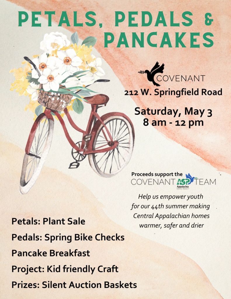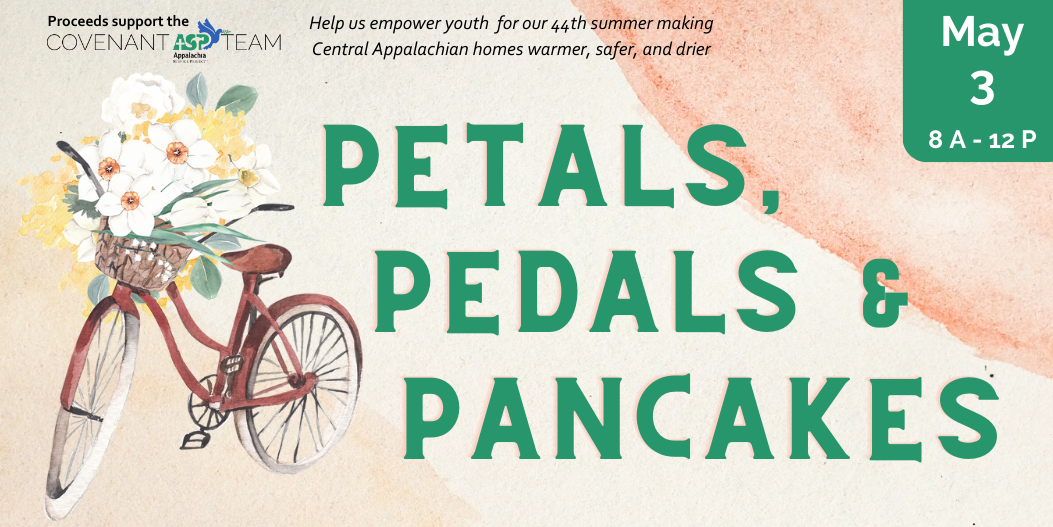 The Covenant Appalachia Service Project Team is getting ready for our summer mission trip to Central Appalachia. We’ve grown our annual plant sale into a bigger event: ASP Petals, Pedals & Pancakes – with all kinds of ways to support the ASP team.